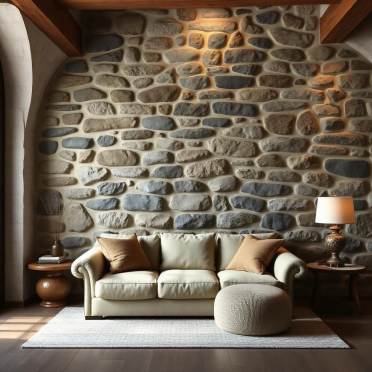 Recreate the presence of stone without masonry by using limewash or chalky, mineral paints. Soft greys, mossed greens, or deep earthen browns applied in a cross-hatch motion create tonal variation that echoes ancient walls. The result is a surface with visual weight and quiet movement—cocooning, atmospheric, and resolutely timeless.