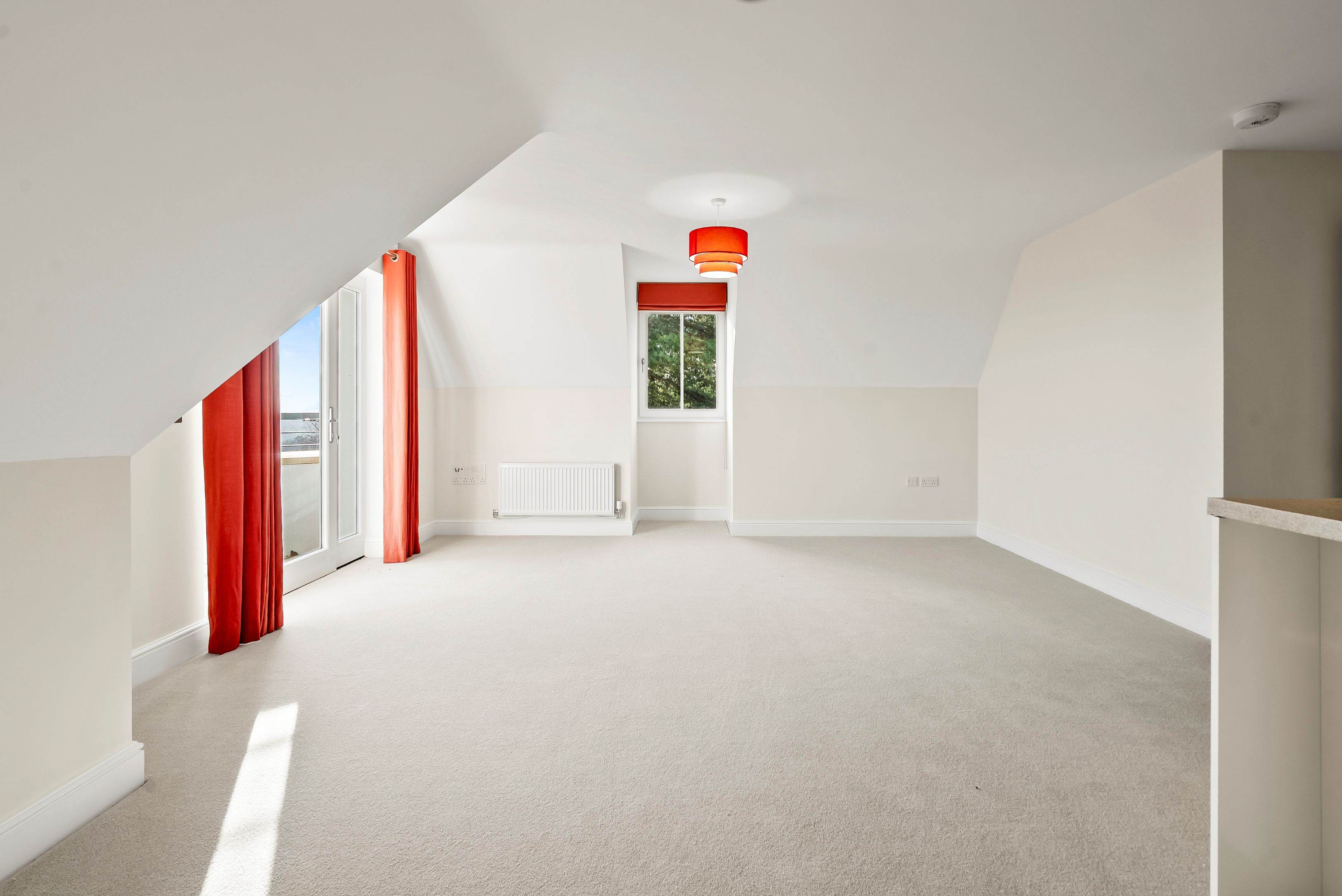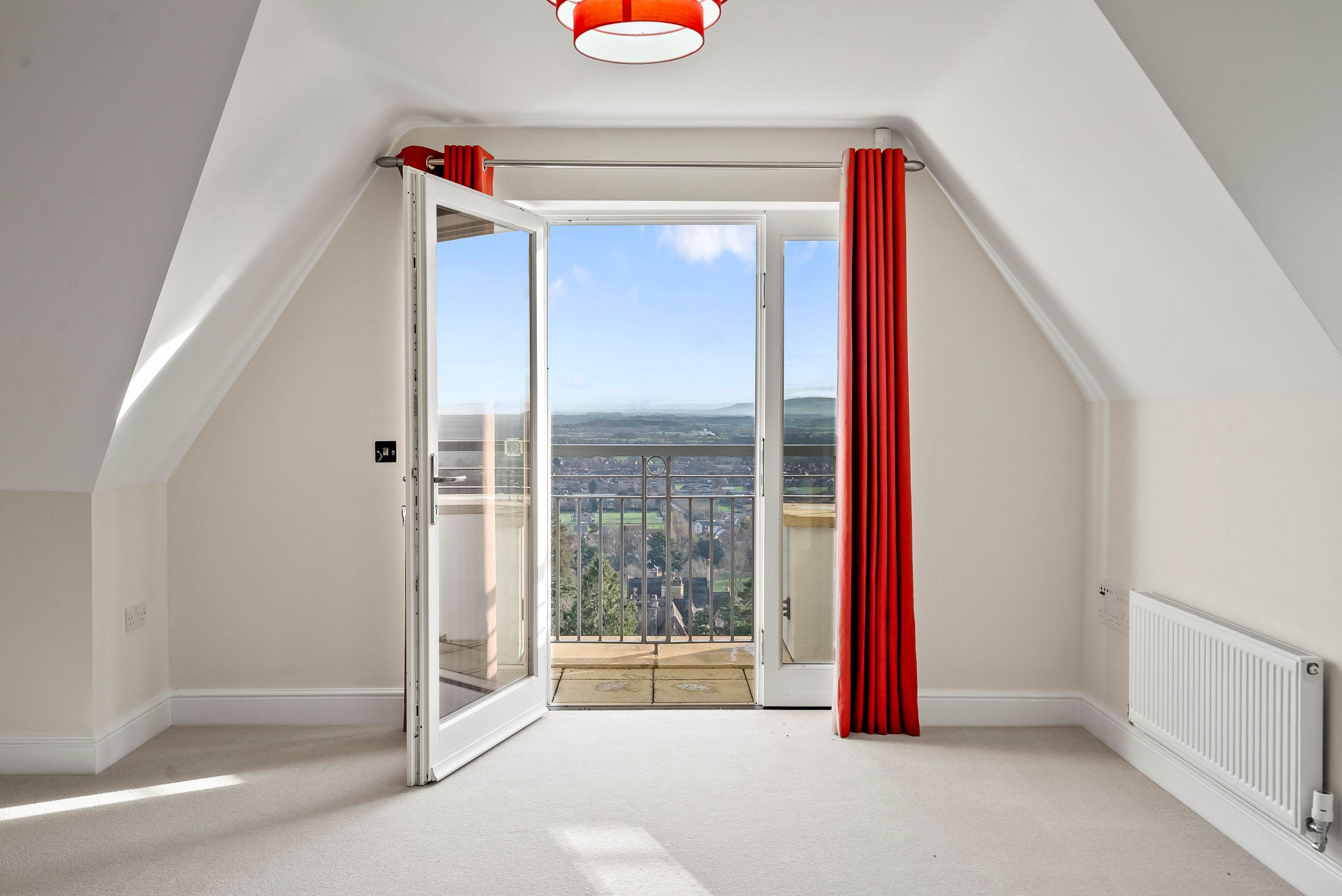01684 438450A wonderful top floor one-bedroom apartment with east facing views and balcony. Featuring an open plan spacious kitchen and living room with French doors leading to the balcony.