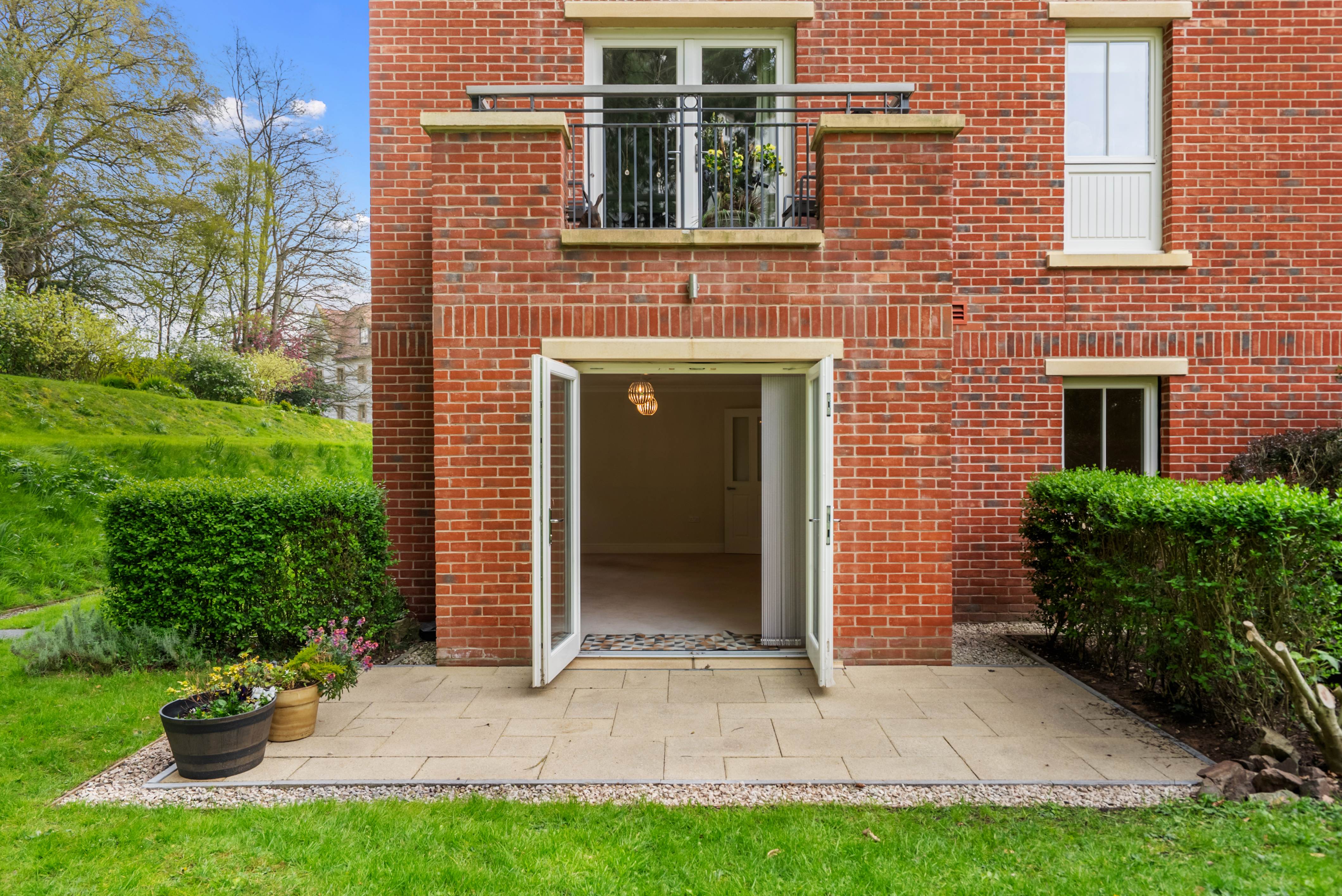 01684 438450A wonderful ground floor two-bedroom apartment with south facing private terrace. Featuring a separate kitchen and spacious living room with French doors leading to the terrace. Two generous sized bedrooms with ensuite and separate bathroom.