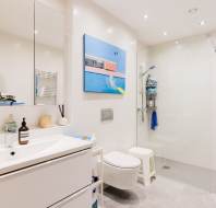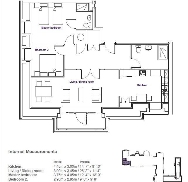 Inside, a generous entrance hall leads into a spacious and light-filled living room, which opens seamlessly into a stunning modern fitted kitchen with ample space for dining. The property offers two well‑proportioned double bedrooms, including a main bedroom with an en suite shower room. A further contemporary shower room is accessed from the hallway, completing this impressive apartment.