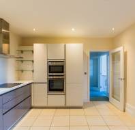 A substantial kitchen-diner offers ample space for formal dining and is fitted with a contemporary SieMatic kitchen, finished with elegant Corian work surfaces and a range of integrated appliances.