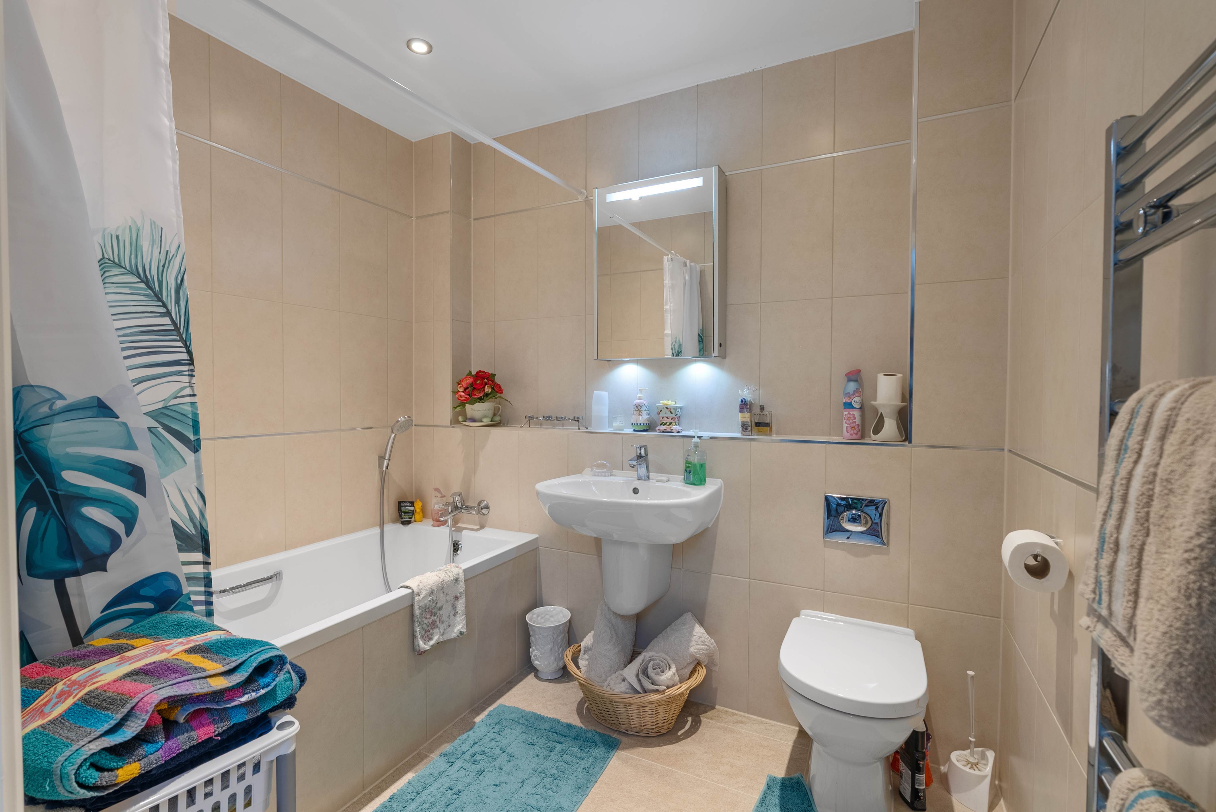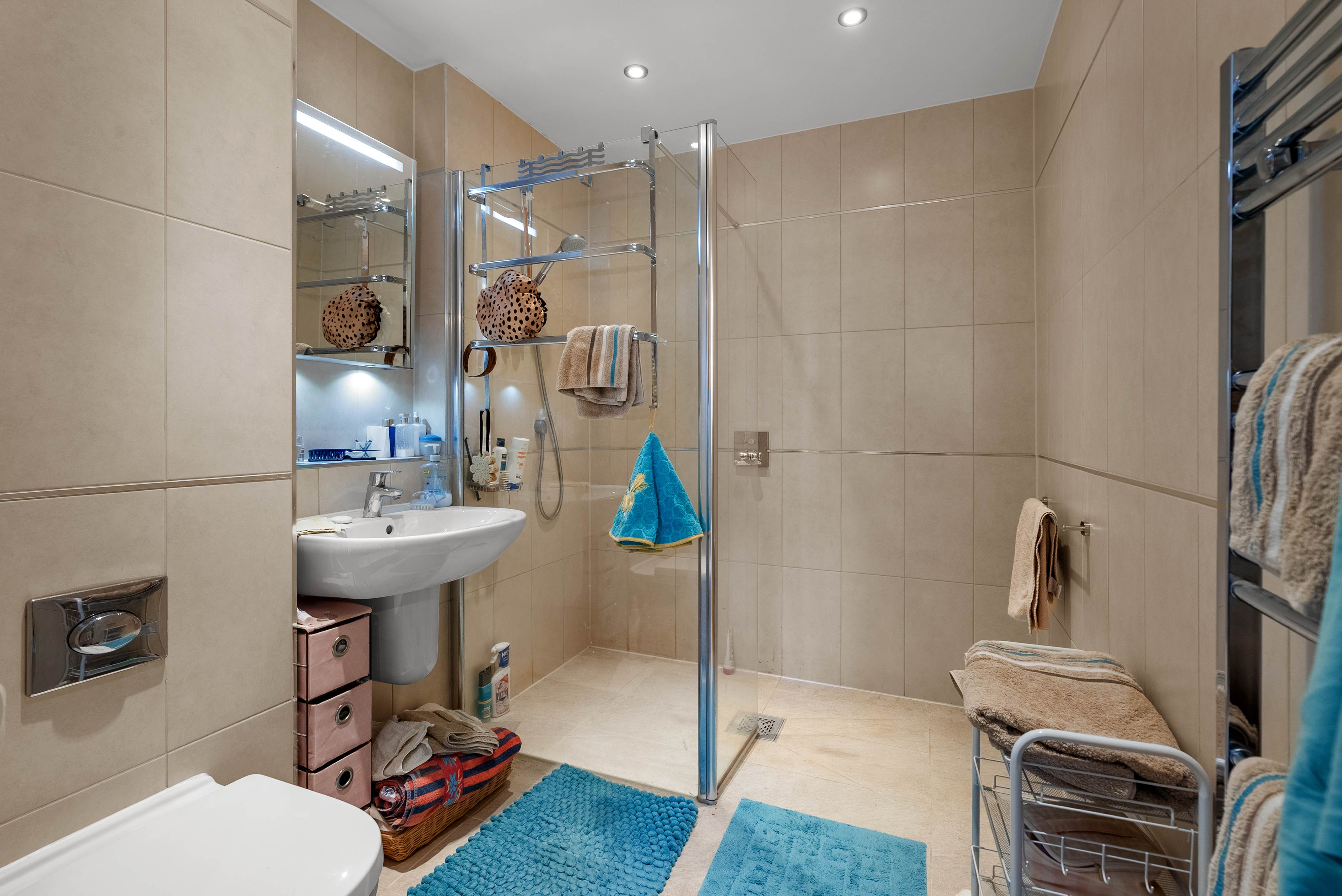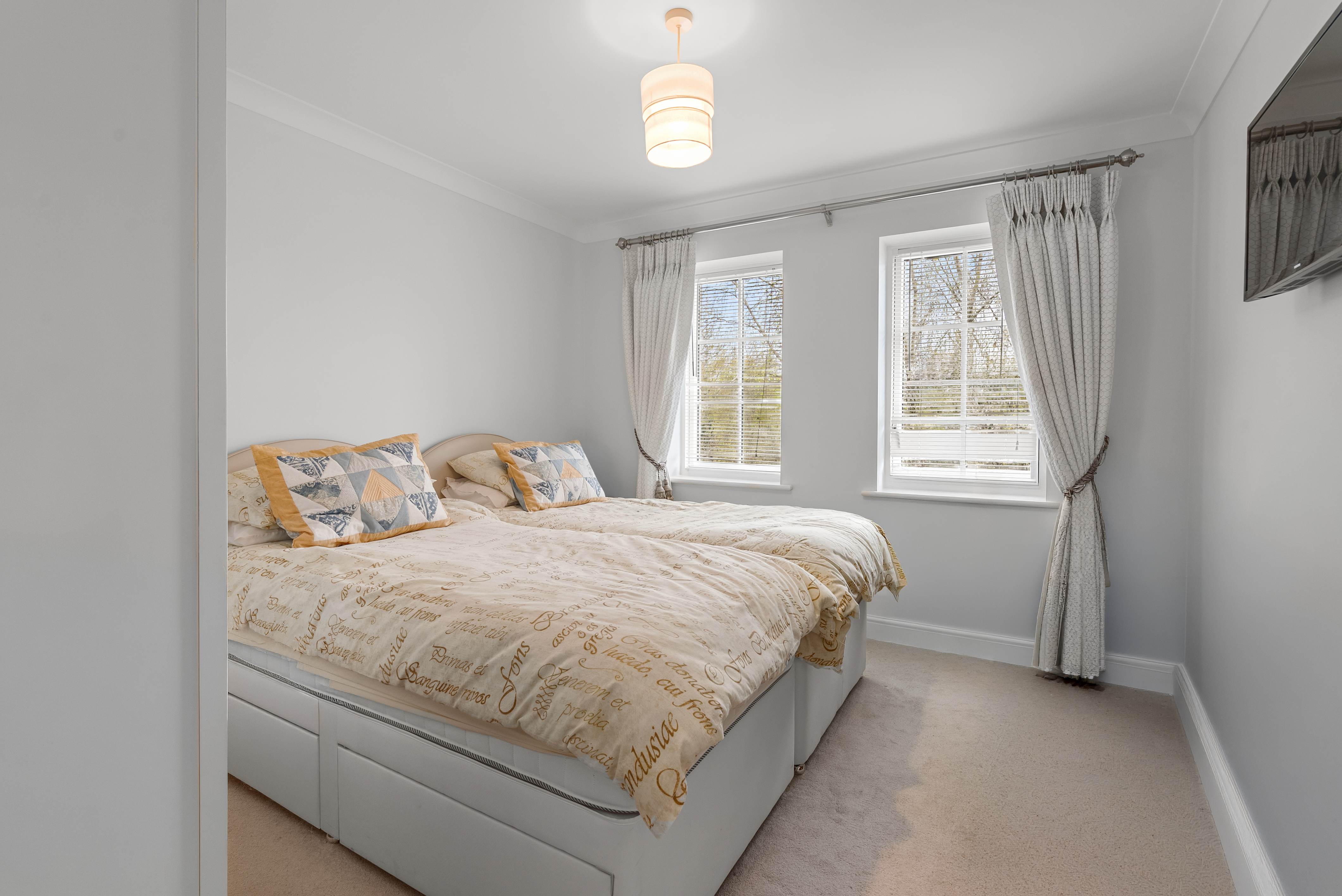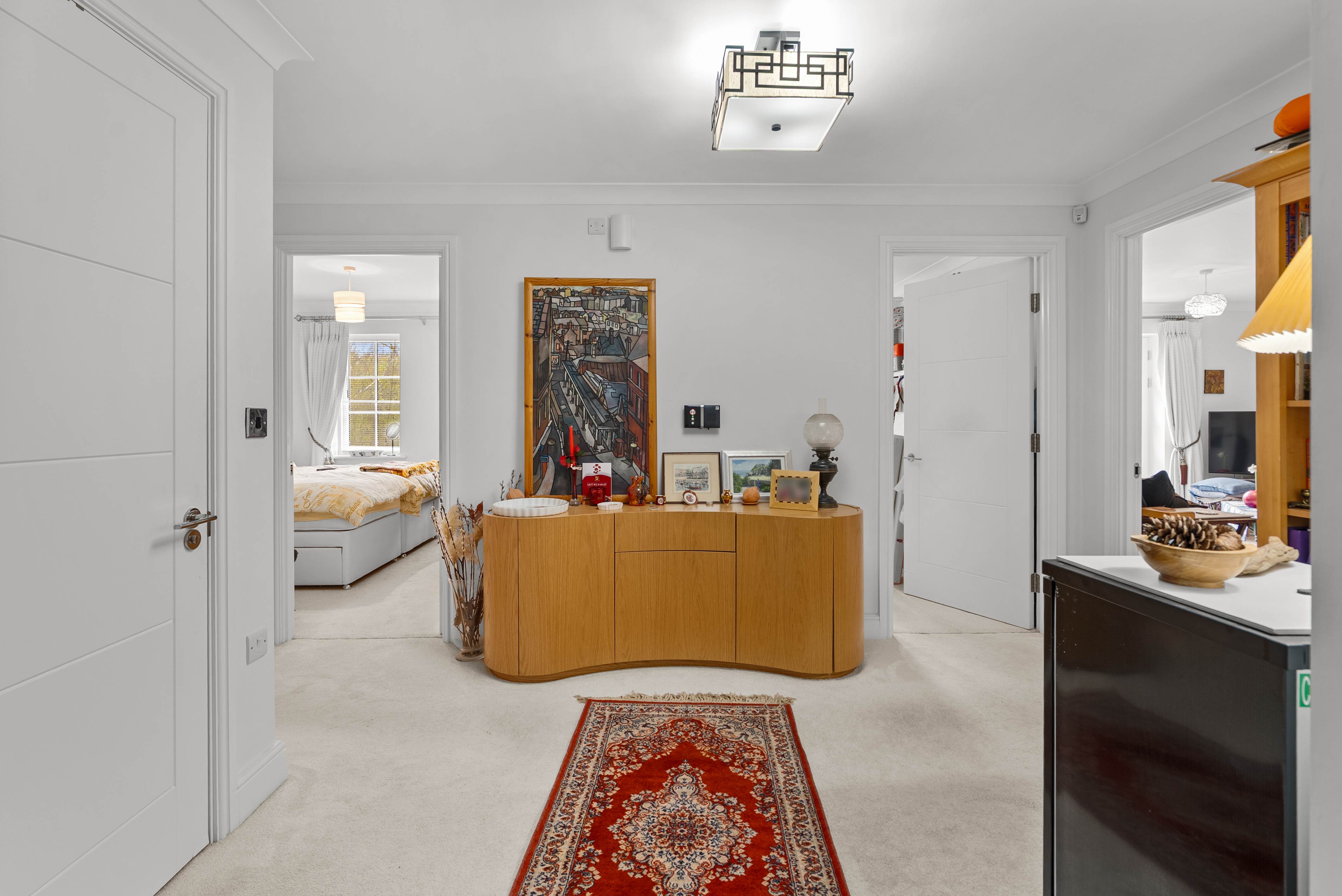 The main bedroom has a walk-in wardrobe and an en suite with walk-in shower. A further two bedrooms and separate bathroom from the spacious hallway.