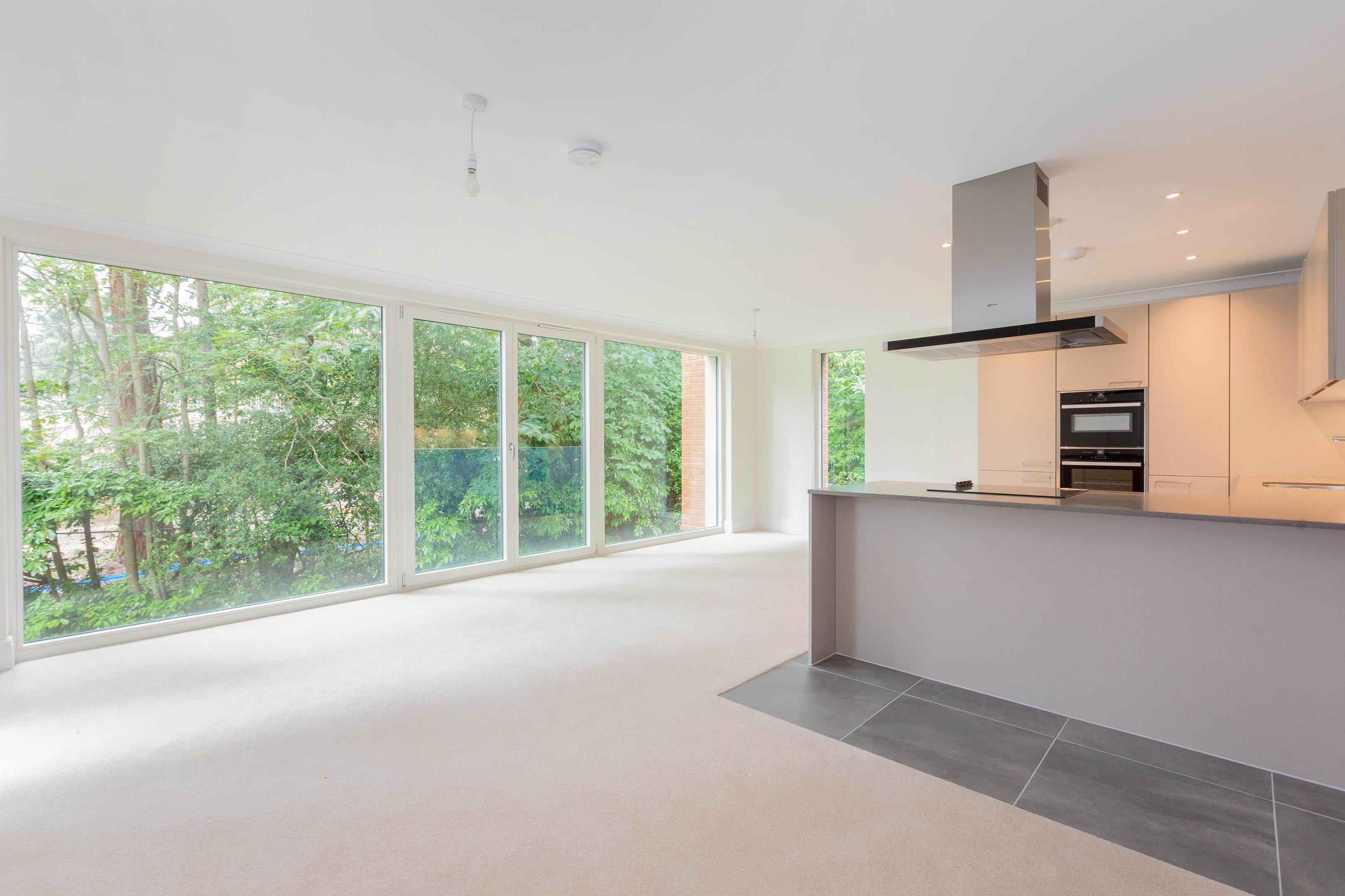 01344 859 200This two bedroom apartment has an open plan kitchen/living room with doors opening on to a south west-facing terrace.