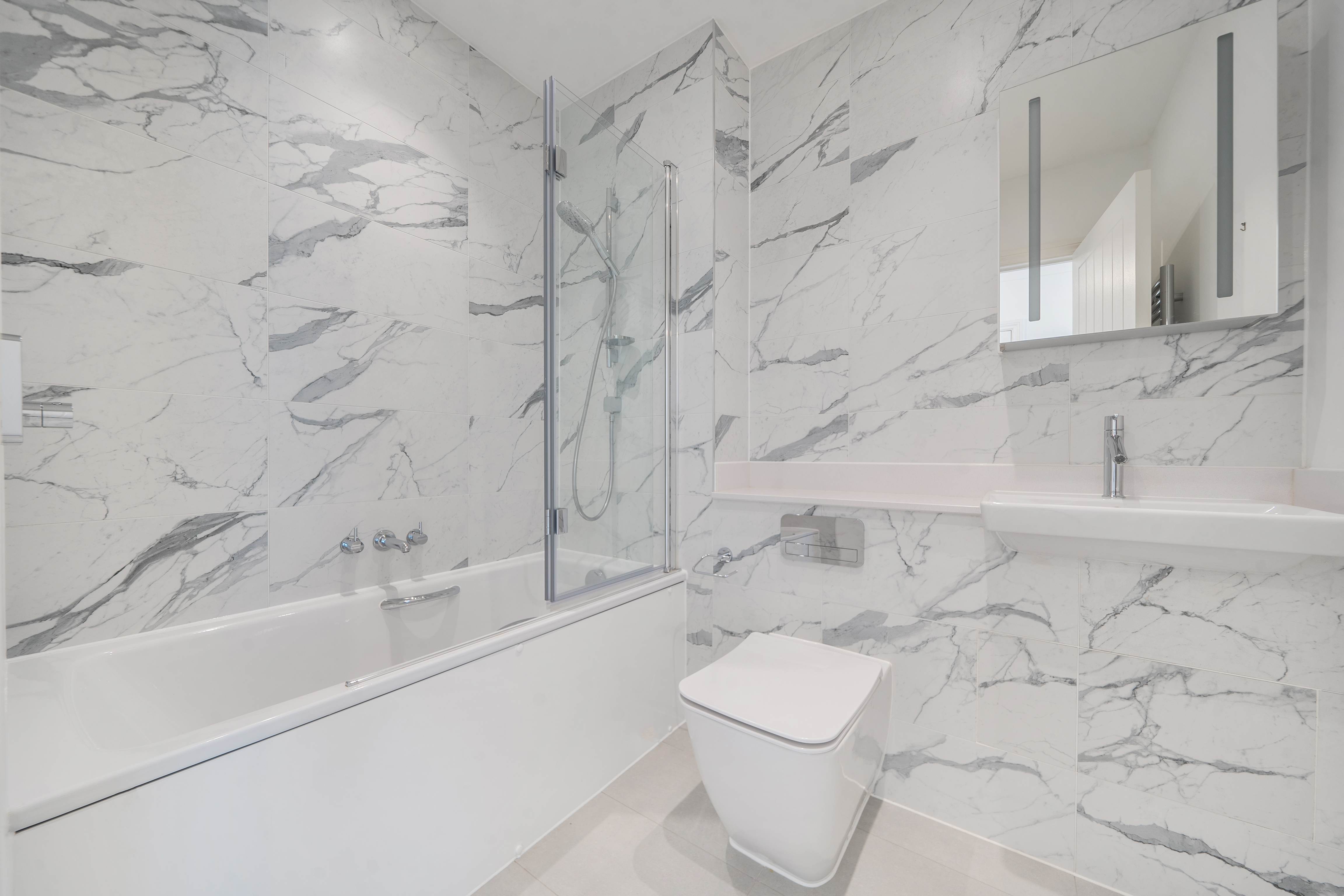 The main bedroom features built-in wardrobes, along with a stylish en-suite shower room. A separate guest bathroom is provided both fitted with Villeroy & Boch sanitaryware.