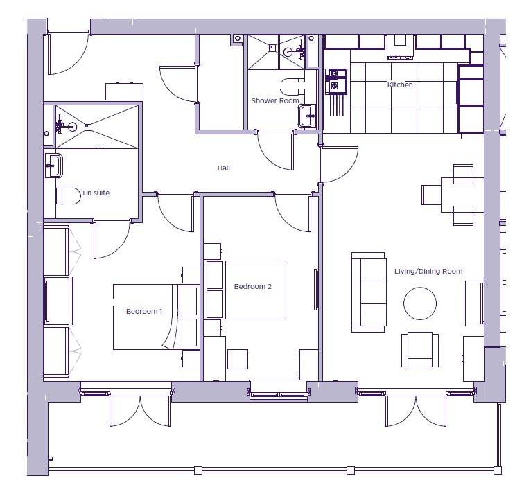 01494 958 639This apartment features a generous private balcony, accessed directly from both the living room and the main bedroom. The living room provides a large, versatile area with room for a dining table and flows into the open plan kitchen, fitted with contemporary Nobilia cabinetry and integrated appliances.